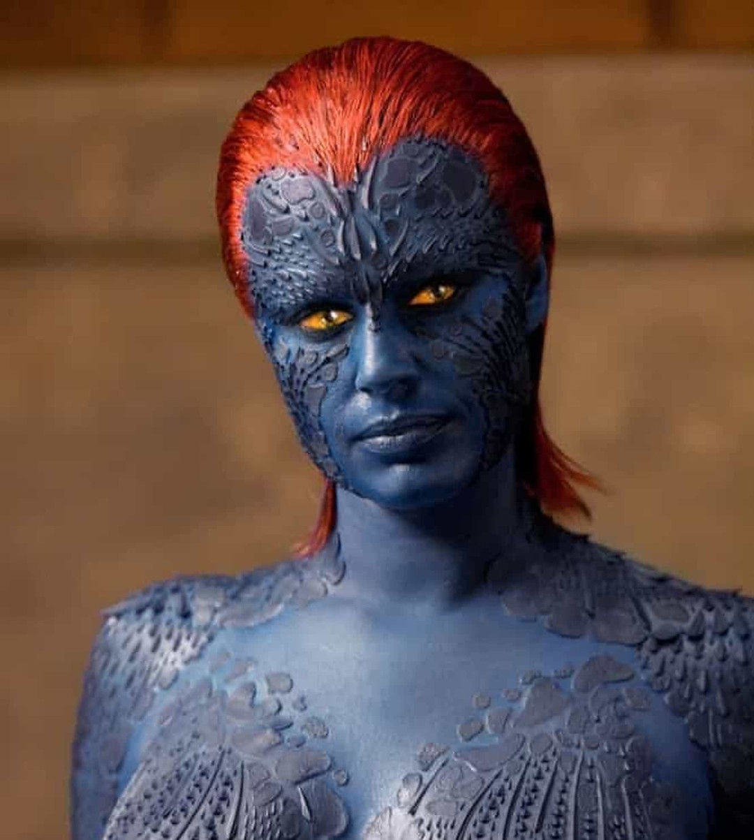 在詹妮弗・劳伦斯接手前,丽贝卡・罗梅恩的魔形女靠 110 块硅胶假体 “贴” 出了经典。作为前超模,她为了角色放弃美貌,全身涂蓝漆、贴鳞片,成就了 X 战警宇宙最性感的变种人之一。%